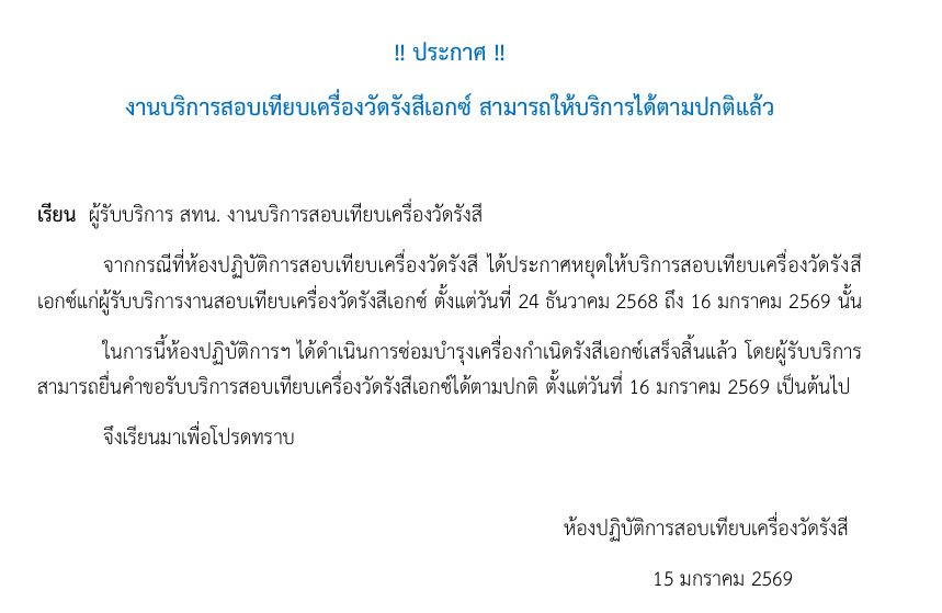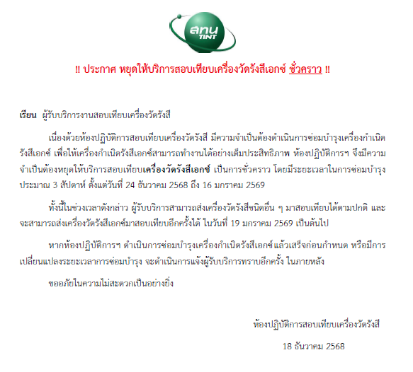 สถาบันฯ ไม่มีเครื่องวัดรังสีสำรองให้ผู้ขอรับบริการยืมใช้งานในระหว่างส่งสอบ